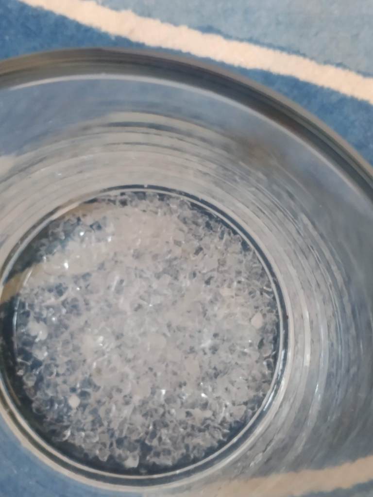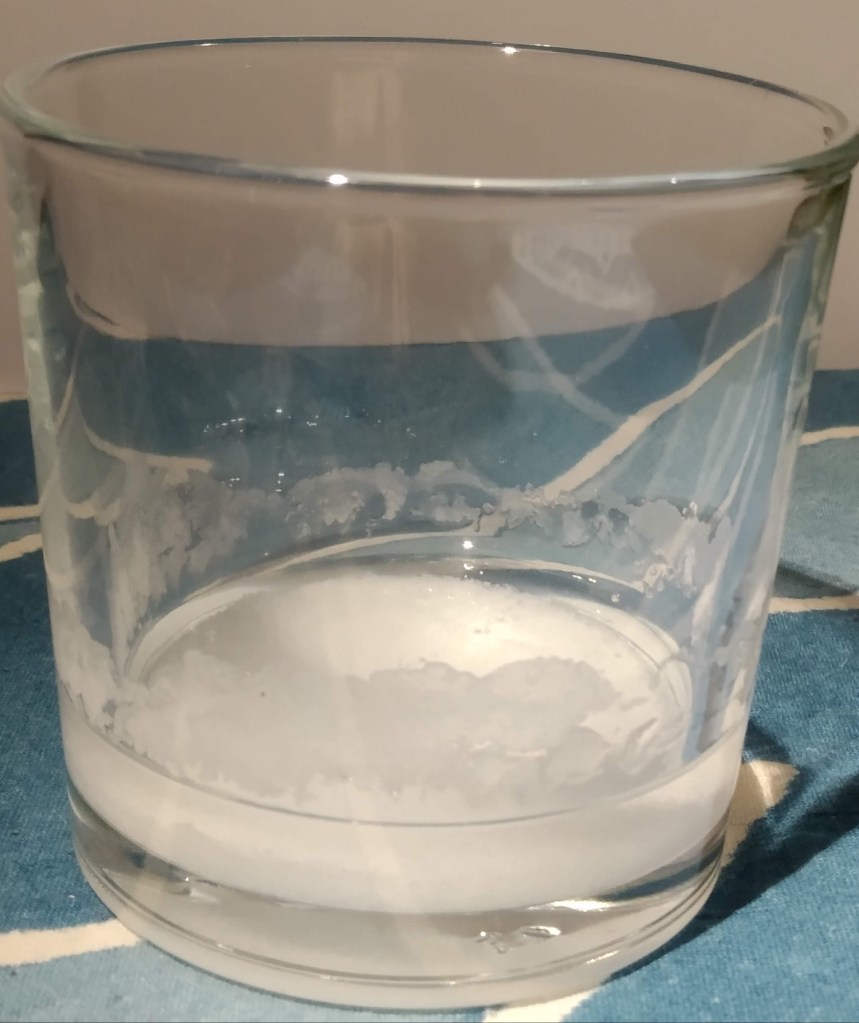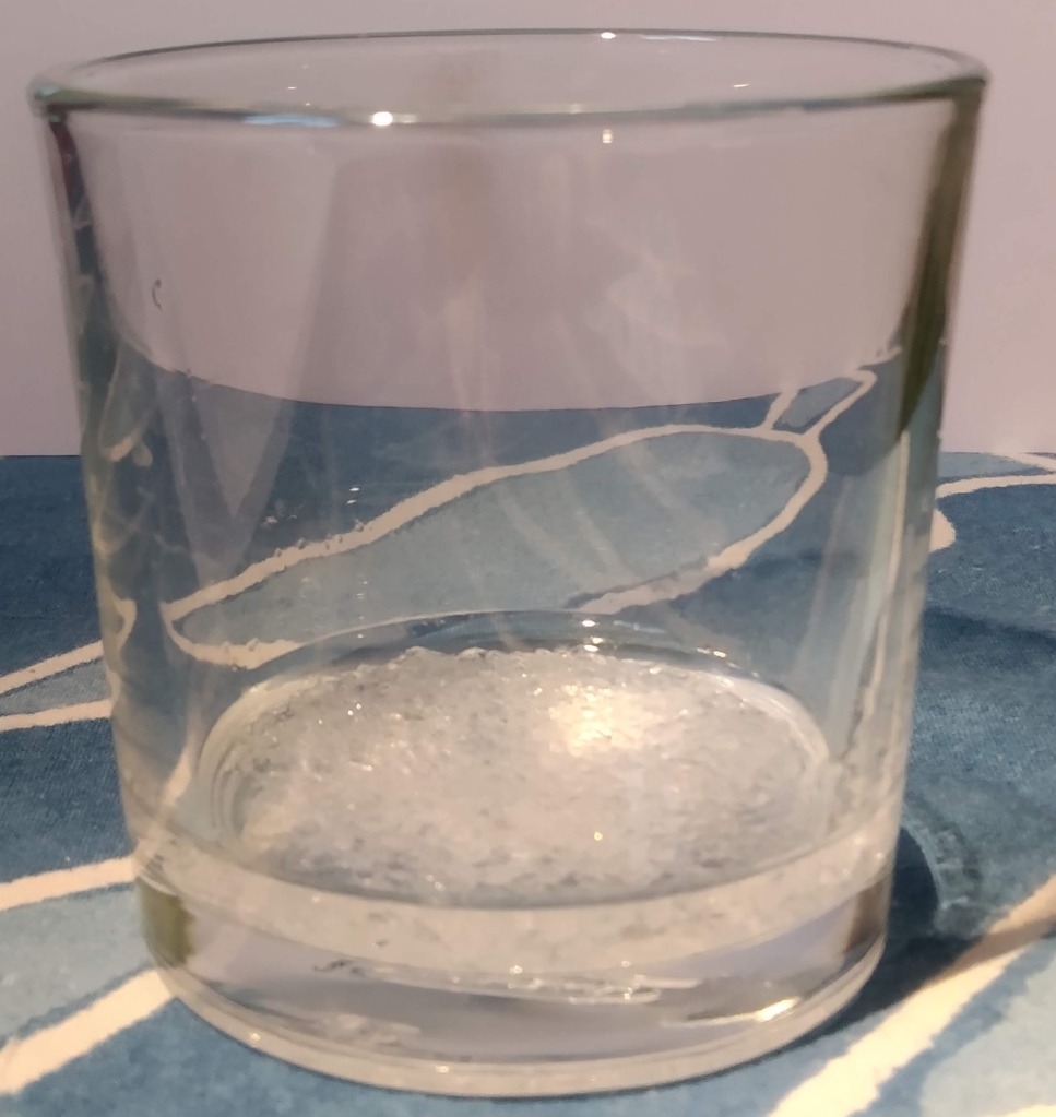 Schütte das Salz (ca. 0,5 cm hoch ) in ein Glas.